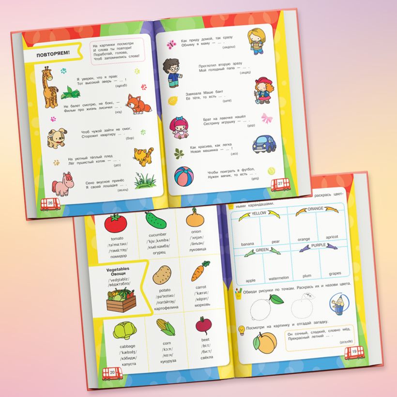 Выполняя большое количество разнообразных занимательных заданий, ребёнок научится узнавать буквы и писать их, потренируется определять звуки в словах; будет обводить пунктирные линии, соединять точки, дорисовывать узоры, раскрашивать, штриховать, обводить и писать печатные буквы; освоит свои первые английские слова и потренируется произносить новые звуки. В книгах учтены возрастные особенности детей: все материалы подобраны так, чтобы ребёнку было понятно и интересно.