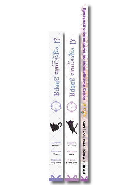 Комплект из 3-х книг с подарком (Я взрастила зверя. Том 1 / Том 2, Прогулка с котиками по волшебному Сеулу. Корейская раскраска для души)