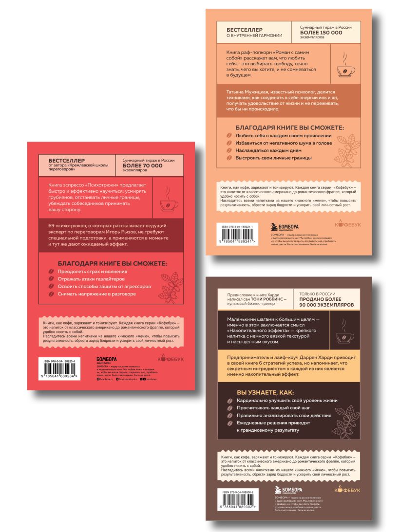 Комплект состоит из 3-х книг серии Кофебук, дополнен удобным шоппером
