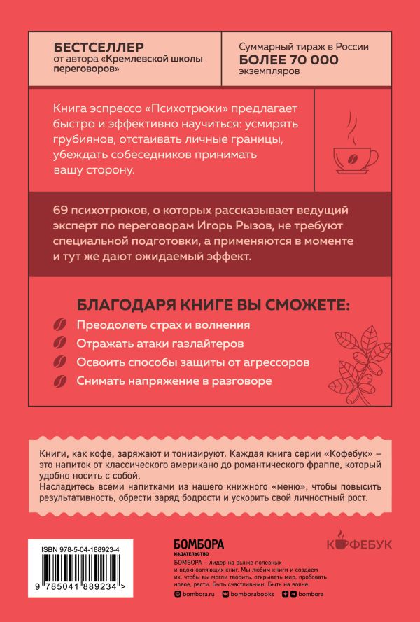 Автор этой книги — Игорь Рызов — ведущий эксперт по переговорам, автор четырех бестселлеров, дважды победитель премии "Деловая книга года". Он предлагает 69 психотрюков для: