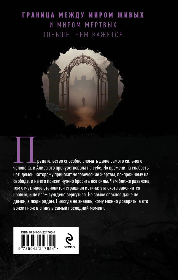 Предательство способно сломать даже самого сильного человека, и Алиса это прочувствовала на себе. Но времени на слабость нет: демон, которому приносят человеческие жертвы, по-прежнему на свободе, и на его поиски нужно бросить все силы. Чем ближе развязка, тем отчетливее становится страшная истина: эта охота закончится кровью, и не всем суждено вернуться. Но самое опасное даже не демон, а люди рядом. Никогда не знаешь, кому можно доверять, а кто вонзит нож в спину в самый последний момент.