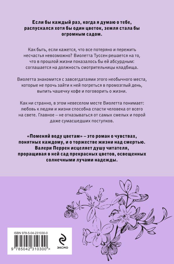 «Поменяй воду цветам» — это роман о чувствах, понятных каждому, и о торжестве жизни над смертью. Валери Перрен исцеляет душу читателя, проращивая в ней сад прекрасных цветов, освещенных солнечными лучами надежды.
