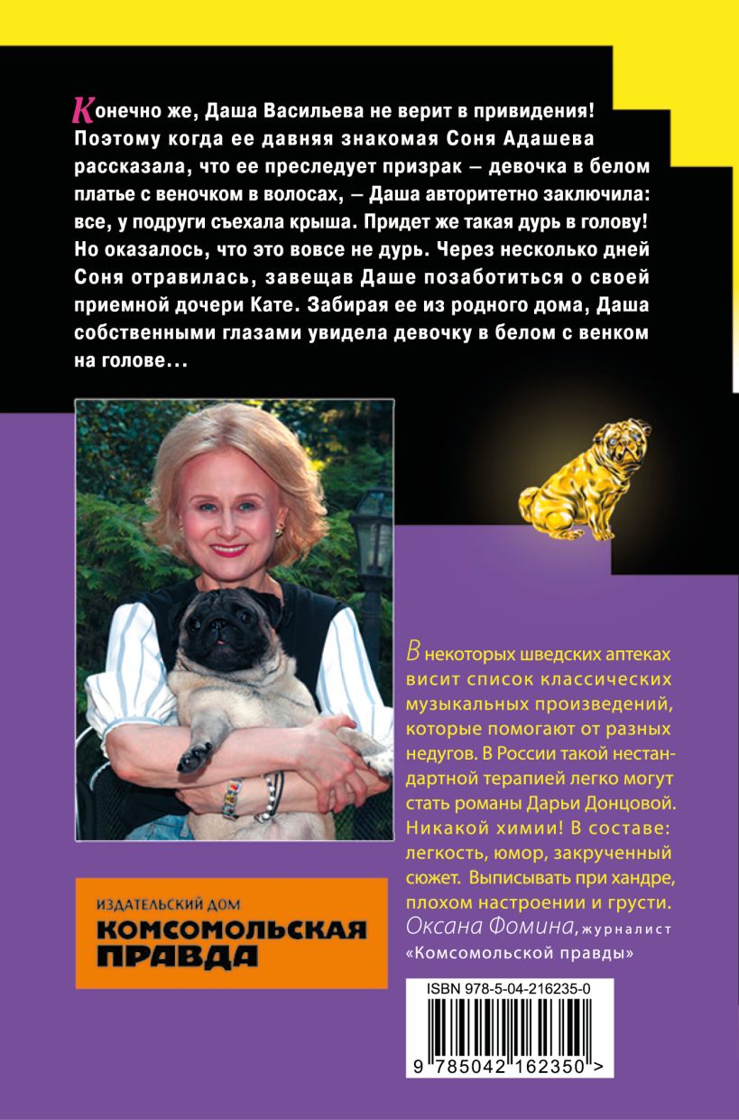 Конечно же, Даша Васильева не верит в привидения! Поэтому когда ее давняя знакомая Соня Адашева рассказала, что ее преследует призрак – девочка в белом платье с веночком в волосах, Даша авторитетно заключила: все, у подруги съехала крыша. Придет же такая дурь в голову! Но оказалось, что это вовсе не дурь. Через несколько дней Соня отравилась, завещав Даше позаботиться о своей приемной дочери Кате. Забирая ее из родного дома, Даша собственными глазами увидела девочку в белом с венком на голове...
