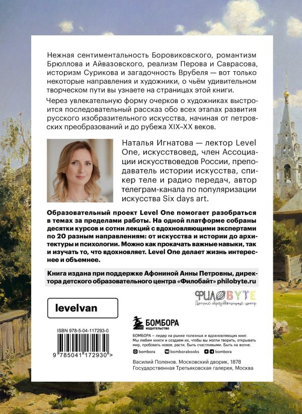 Главные имена русского искусства, творческие объединения, живописные произведения и события мира искусства, тесно переплетенные с историей периода, охватывающего почти 200 лет — в новой книге Натальи Игнатовой, члена Ассоциации искусствоведов России, преподавателя истории искусства. Вас ждет увлекательное и подробное знакомство с великими русскими художниками, особенностями их живописного языка и взгляда на мир.