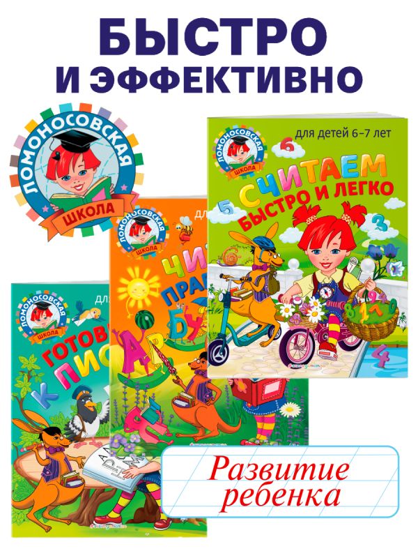 Авторы пособий применяют успешные наработки современных педагогов, опираясь на классические стандарты отечественного образования. Такое сочетание гарантирует высокий уровень знаний учеников. В комплект входят: "Готовимся к письму", "Читаем правильно", "Считаем быстро и легко" для детей 6-7 лет.