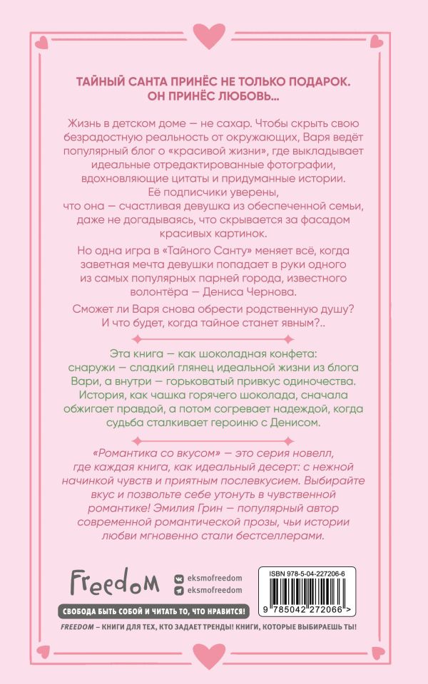 Но одна игра в «Тайного Санту» меняет все, когда заветная мечта девушки попадает в руки одного из самых популярных парней города, известного волонтера — Дениса Чернова.