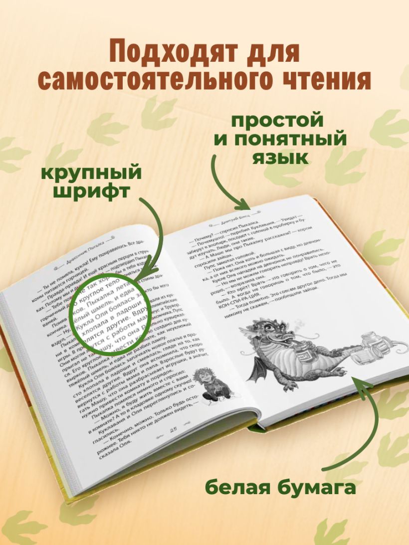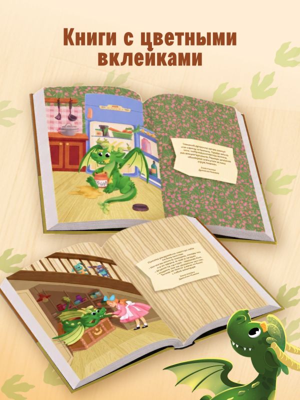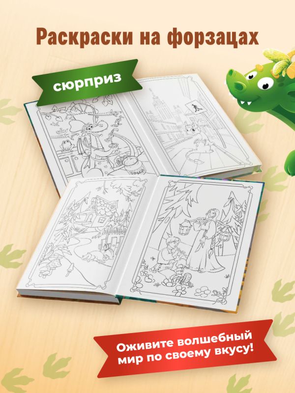 ИНТЕРАКТИВ — РАСКРАСКИ НА ФОРЗАЦАХ! Дайте волю воображению — раскрасьте четыре сказочные сцены и оживите волшебный мир Дракончика Пыхалки по своему вкусу!