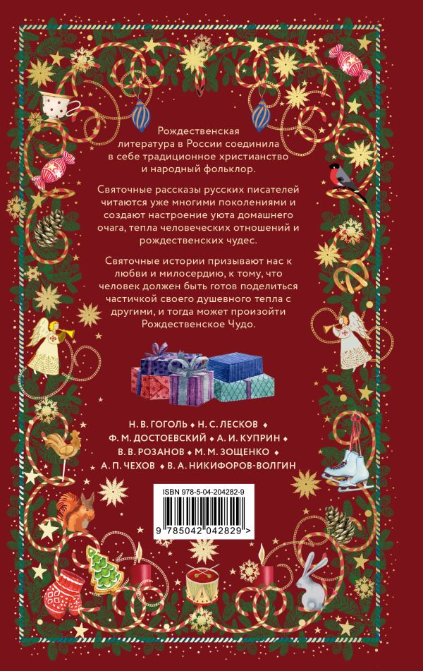 В сборники вошли знаковые произведения классики: «Ночь перед Рождеством» Н.В. Гоголя и «Мальчик у Христа на ёлке» Ф.М. Достоевского, «Щелкунчик» Т.А. Гофмана и «Рождественская песнь» Ч. Диккенса. Многие святочные рассказы, которые впервые читаются в семейном кругу именно на Рождество, — так формируются традиции, которые передаются из поколения в поколение.