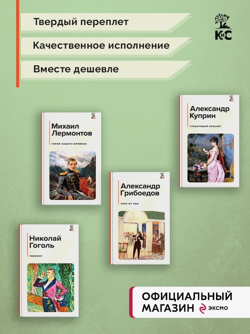 Комплект из 4-х книг: "Герой нашего времени", "Горе от ума", "Ревизор", "Гранатовый браслет" (ИК)