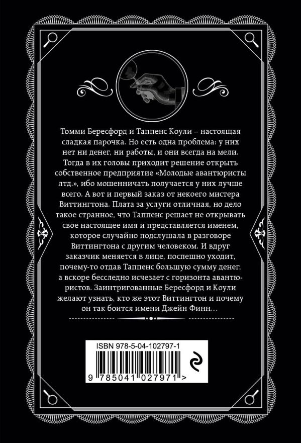 Томми Бepecфорд и Таппенс Коули — настоящая сладкая парочка. Но есть одна проблема: у них нет ни денег, ни работы, и они всегда на мели. Тогда в их головы приходит решение открыть собственное предприятие «Молодые авантюристы лтд.», ибо мошенничать получается у них лучше всего. А вот и первый заказ от некоего мистера Виттингтона. Плата за услуги отличная, но дело такое странное, что Таппенс решает не открывать свое настоящее имя и представляется именем, которое случайно подслушала в разговоре Виттингтона с другим человеком. И вдруг заказчик меняется в лице, поспешно уходит, почему-то отдав Таппенс большую сумму денег, а вскоре бесследно исчезает с горизонта авантюристов. Заинтригованные Бересфорд и Коули желают узнать, кто же этот Виттингтон и почему он так боится имени Джейн Финн…