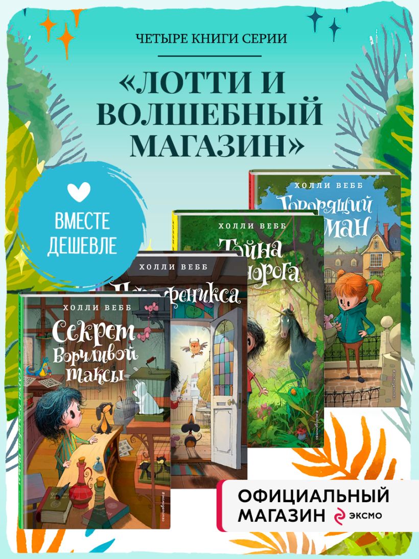Комплект из 4-х книг Холли Вебб: Лотти и волшебный магазин Том 4-7: Секрет ворчливой таксы, Перо феникса, Тайна единорога и Говорящий карман.