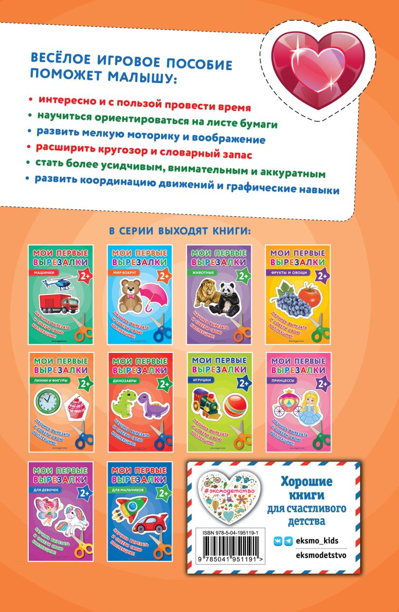 Книги помогут развить мелкую моторику и творческие способности малыша. Вырезая по контуру фигуры и предметы, ребёнок научится правильно держать ножницы, ориентироваться на листе бумаги и различать цвета, потренирует внимание и воображение, а также соберёт свою первую коллекцию.