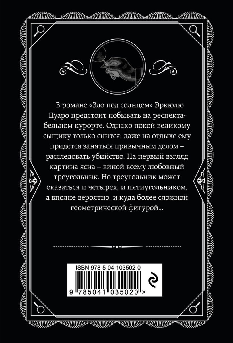 В романе «Зло под солнцем» Эркюлю Пуаро предстоит побывать на респектабельном курорте. Однако покой великому сыщику только снится: даже на отдыхе ему придется заняться привычным делом — расследовать убийство. На первый взгляд картина ясна — виной всему любовный треугольник. Но треугольник может оказаться и четырех-, и пятиугольником, а вполне вероятно, и куда более сложной геометрической фигурой.