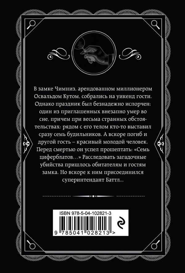 В замке Чимниз, арендованном миллионером Освальдом Кутом, собрались на уикенд гости. Однако праздник был безнадежно испорчен: один из приглашенных внезапно умер во сне, причем при весьма странных обстоятельствах: рядом с его телом кто-то выставил сразу семь будильников. А вскоре погиб и другой гость — красивый молодой человек. Перед смертью он успел прошептать: «Семь Циферблатов…». Расследовать загадочные убийства пришлось обитателям и гостям замка. Но вскоре к ним присоединился суперинтендант Баттл...