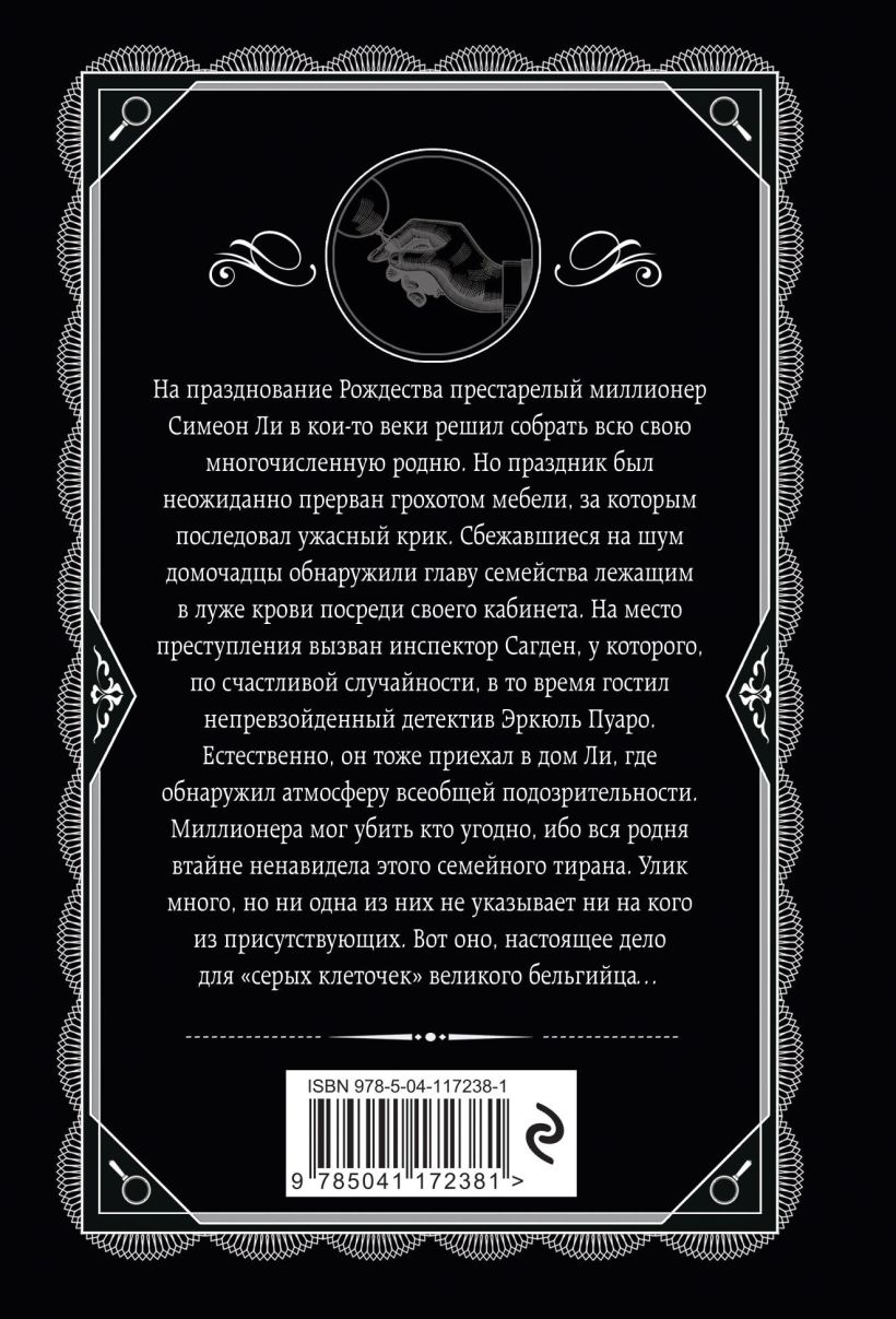 На празднование Рождества престарелый миллионер Симеон Ли в кои-то веки решил собрать всю свою многочисленную родню. Но праздник был неожиданно прерван грохотом мебели, за которым последовал ужасный крик. Сбежавшиеся на шум домочадцы обнаружили главу семейства лежащим в луже крови посреди своего кабинета. На место преступления вызван инспектор Сагден, у которого по счастливой случайности в то время гостил непревзойденный детектив Эркюль Пуаро. Естественно, он тоже приехал в дом Ли, где обнаружил атмосферу всеобщей подозрительности. Миллионера мог убить кто угодно — ибо вся родня втайне ненавидела этого семейного тирана. Улик много, но ни одна из них не указывает ни на кого из присутствующих. Вот оно, настоящее дело для «серых клеточек» великого бельгийца…