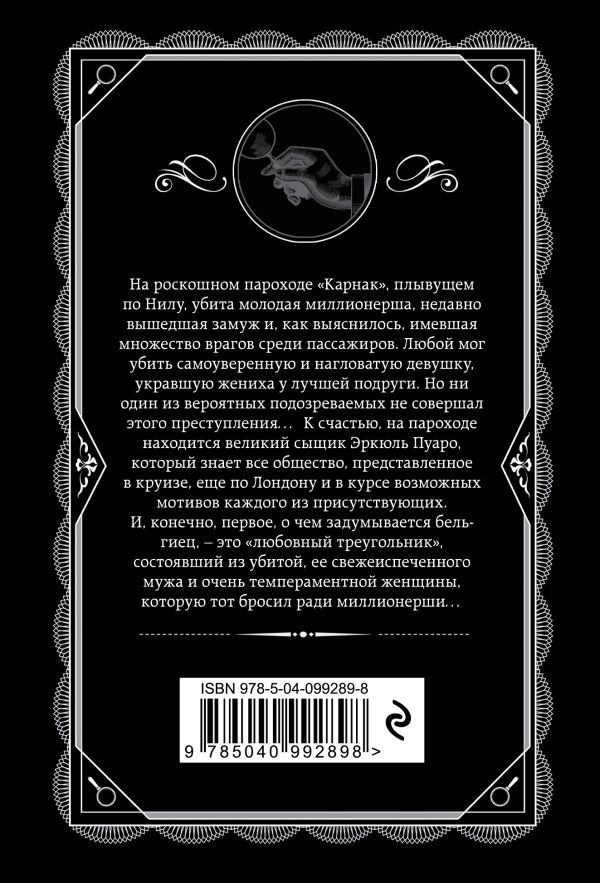 На роскошном пароходе "Карнак", плывущем по Нилу, убита молодая миллионерша, недавно вышедшая замуж и, как выяснилось, имевшая множество врагов среди пассажиров. Любой мог убить самоуверенную и нагловатую девушку, укравшую жениха у лучшей подруги. Но ни один из вероятных подозреваемых не совершал этого преступления… К счастью, на пароходе находится великий сыщик Эркюль Пуаро, который знает все общество, представленное в круизе, еще по Лондону, и в курсе возможных мотивов каждого из присутствующих. И, конечно, первое, о чем задумывается бельгиец, – это о "любовном треугольнике", состоявшем из убитой, ее свежеиспеченного мужа и очень темпераментной женщины, которую тот бросил ради миллионерши…