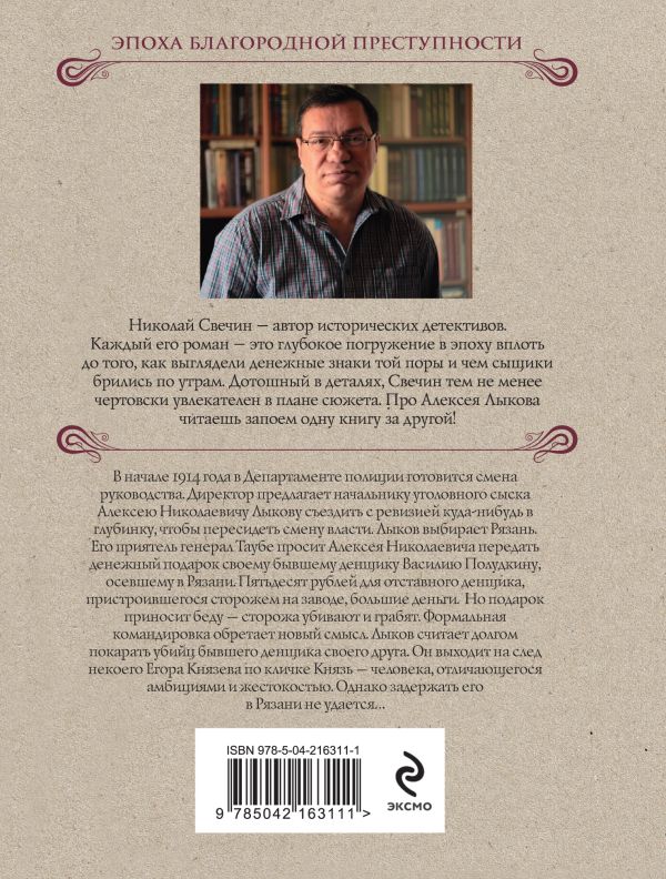 Но подарок приносит беду — сторожа убивают и грабят. Формальная командировка обретает новый смысл. Лыков считает долгом покарать убийц бывшего денщика своего друга. Он выходит на след некоего Егора Князева по кличке Князь — человека, отличающегося амбициями и жестокостью. Однако задержать его в Рязани не удается…