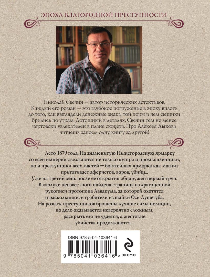 Лето 1879 года. На знаменитую Нижегородскую ярмарку со всех концов Российской Империи съезжаются не только купцы и промышленники, но и преступники всех мастей — богатейшая ярмарка как магнит притягивает аферистов, воров, убийц... Уже за день до ее открытия обнаружен первый труп. В каблуке неизвестного найдена страница из драгоценной рукописи протопопа Аввакума, за которой охотятся и раскольники, и грабители из шайки Оси Душегуба. На розыск преступников брошены лучшие силы полиции, но дело оказывается невероятно сложным, раскрыть его не удается, а жестокие убийства продолжаются...