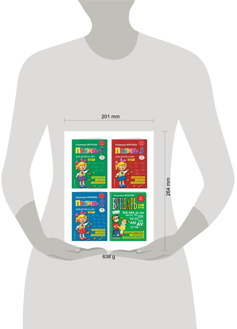 Комплект бестселлеров Надежды Жуковой, который поможет ребенку быстро научиться правильно читать и писать! "Букварь" - самая эффективная книга для детей, обучающая ребенка чтению + комплект из 3 прописей. Соответствуют ФГОС. Авторская методика, которая заключается в изучении слогов, а не отдельно взятых букв позволит быстро научиться читать и легко перейти к письму. Прописи для дошкольников помогут научиться правильно и красиво писать. Задания усложняются от написания простых буквенных элементов до целых слов. Для удобства материал в прописях Жуковой разделен на 3 тетради. Этот комплект развивающих книг для детей станет незаменимым помощником в подготовке к школе.