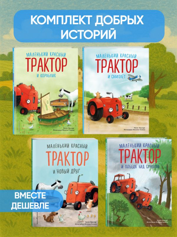 Комплект из 4 книг Натали Квинтарт с лучшими исторями о взаимовыручке: "Маленький красный Трактор и кораблик", "Маленький красный Трактор и самолёт", "Маленький красный Трактор и новый друг", "Маленький красный Трактор и победа над страхом".