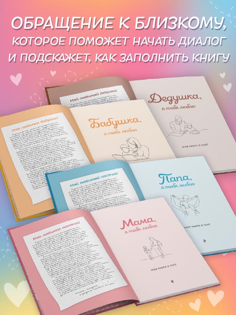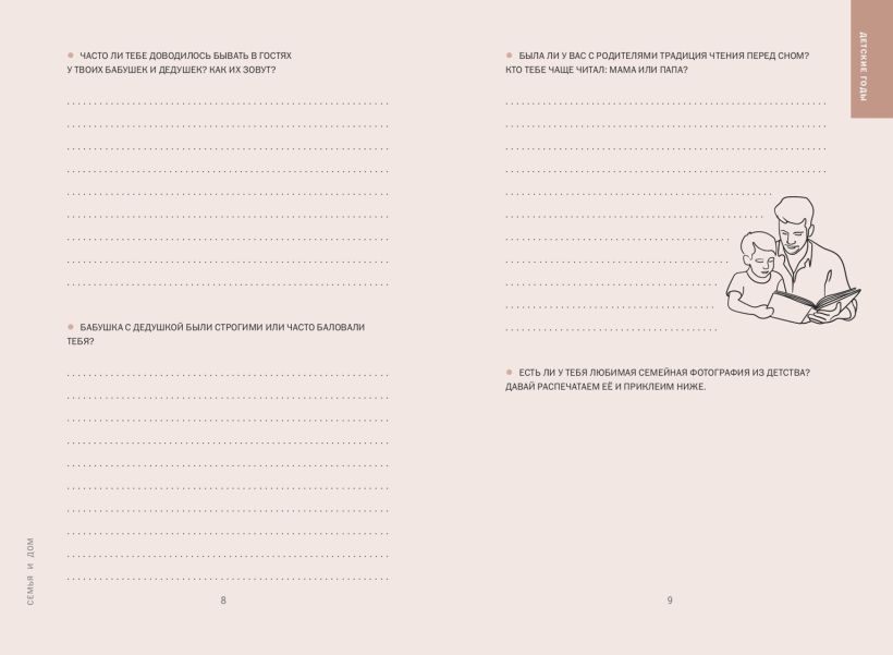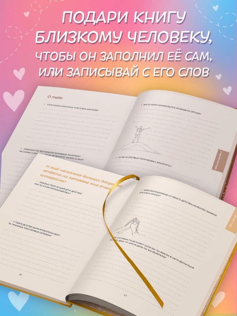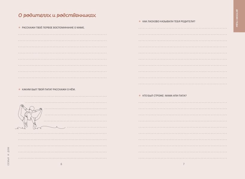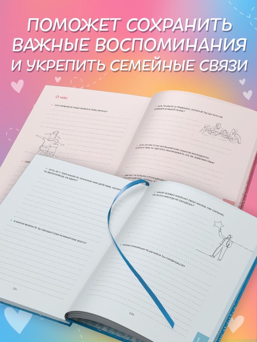 Эти книги — не просто семейный альбом или сборник вопросов. Эти книги — ваше признание в любви к своей семье. Заполните их вместе с ними или запишите ответы самостоятельно с их слов и создайте семейное древо. Если хотите, можете задавать вопросы последовательно, ведь все они расположены хронологически — от детства к нынешнему возрасту. Но на самом деле никаких правил нет! Можете начать диалог с любого места и дальше ориентироваться на ход беседы, переходя от раздела к разделу в зависимости от приходящих воспоминаний. Пусть эта новая традиция станет шагом к узнаванию уникальной истории вашей семьи.
