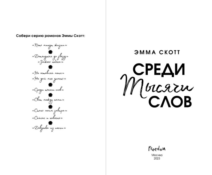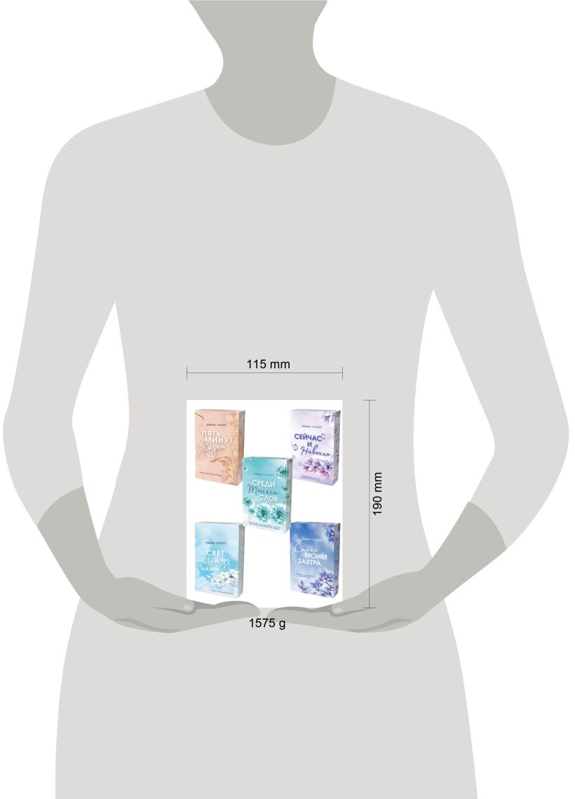 Комплект из пяти книг Эммы Скотт: "Пять минут жизни", "Свет между нами", "Сейчас и навечно", "Среди тысячи слов", "Стань моим завтра". Эмма Скотт — автор бестселлеров New York Times, мастер сентиментальной прозы. Ее истории любви окрыляют и вдохновляют на творчество и новую жизнь! Книги Эммы Скотт — маст-хэв для поклонников по-настоящему эмоциональных романтических сюжетов с красивым, мелодичным слогом и драмой, от которой разрывается сердце.