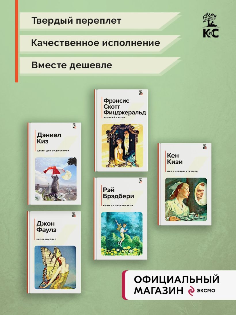 Набор из 5-х книг: "Великий Гэтсби", "Вино из одуванчиков", "Коллекционер", "Над гнездом кукушки", "Цветы для Элджернона"