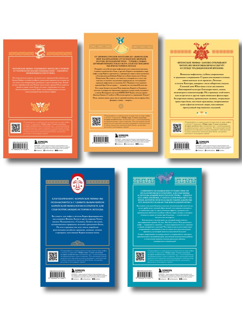 Комплект «Мифы Востока» предлагает читателю неспешное путешествие в пять культур, каждая из которых обладает собственным голосом. Эти истории помогут увидеть, как разные народы пытались объяснить рождение человека и формирование мирового порядка, а также как миф постепенно становится частью национального характера.