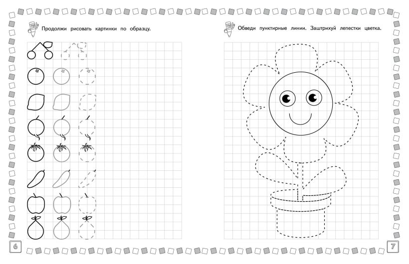 Цель пособия, соответствующего ФГОС — помочь дошкольнику развить графические навыки и подготовить руку к письму. Выполняя интересные игровые задания, ребёнок будет проводить разные типы линий и штриховать, рисовать по точкам, проходить запутанные лабиринты. Весёлые крупные картинки понравятся любому малышу, и он получит от своей деятельности огромное удовольствие. Кроме того, внизу каждой страницы имеются значки для оценки выполненных заданий. Поставив галочку в клетках «да» или «нет», малыш сможет проконтролировать себя, а нарисовав ротик у смайлика вверх или вниз — оценить результат (хорошо / не очень хорошо). Регулярная работа с пособием поможет ребёнку развить мелкую моторику. Покупая пособие для своего ребенка, вы поможете ему: • развить мелкую моторику и графические навыки; • научиться ровно и красиво рисовать линии; • развить навыки самоконтроля и самооценки; • стать усидчивым и аккуратным.