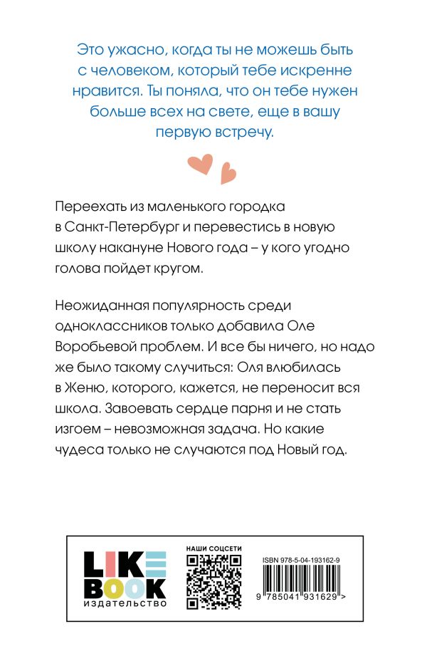 Переехать из маленького городка в Санкт-Петербург и перевестись в новую школу на кануне Нового года – у кого угодно голова пойдет кругом. А неожиданная популярность среди одноклассников только добавила Оле Воробьевой проблем. И все бы ничего, но надо же было такому случиться: Оля влюбилась в Женю, которого, кажется, не переносит вся школа. Завоевать сердце парня и не стать изгоем – невозможная задача. Но какие чудеса только не случаются под Новый год.