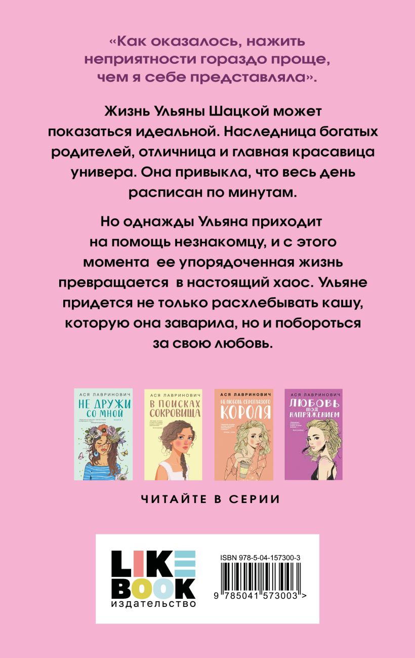 ЗИМНЯЯ НОВИНКА ОТ АСИ ЛАВРИНОВИЧ, САМОГО ПОПУЛЯРНОГО СОВРЕМЕННОГО ЯНГ-ЭДАЛТ АВТОРА! Суммарный тираж ее книг уже более 1 МИЛЛИОНА проданных экземпляров! Один зимний бал. Одна милая карликовая свинка. И одна маленькая ложь, которая перевернет все с ног на голову. Этот Новый год станет незабываемым! У Теоны Берая есть все, о чем может мечтать старшеклассница: верные подруги, популярность в школе, хорошая внешность и отличная успеваемость. А недавно ее пригласил на ежегодный бал самый популярный парень в классе. Когда у ее отца возникают серьезные проблемы на работе, Теона вынуждена переехать в другой город к сводной старшей сестре, которую она совсем не знает. Все планы рушатся в одночасье. В новой школе Теона знакомится с незаметной Ясей Дзвоник и загадочным и неразговорчивым Тихоном Барко. Узнав о давнем желании Яси стать популярной, Теона решается на эксперимент. Ей предстоит «перевоспитать» тихоню и сделать из нее звезду, а Тихона заставить встречаться с королевой школы. Вот так задачка! Об авторе Ася Лавринович — один из самых популярных авторов российского янг-эдалта в жанре современной сентиментальной прозы. Суммарный тираж ее проданных книг составляет более 1 млн экземпляров. Победитель премии «Выбор читателей 2023» на Livelib в номинации «Young Adult. Лучшая книга о подростках и для подростков». На две книги Аси — «Загадай любовь» и «Нелюбовь сероглазого короля» — куплены права на экранизацию от ОККО.