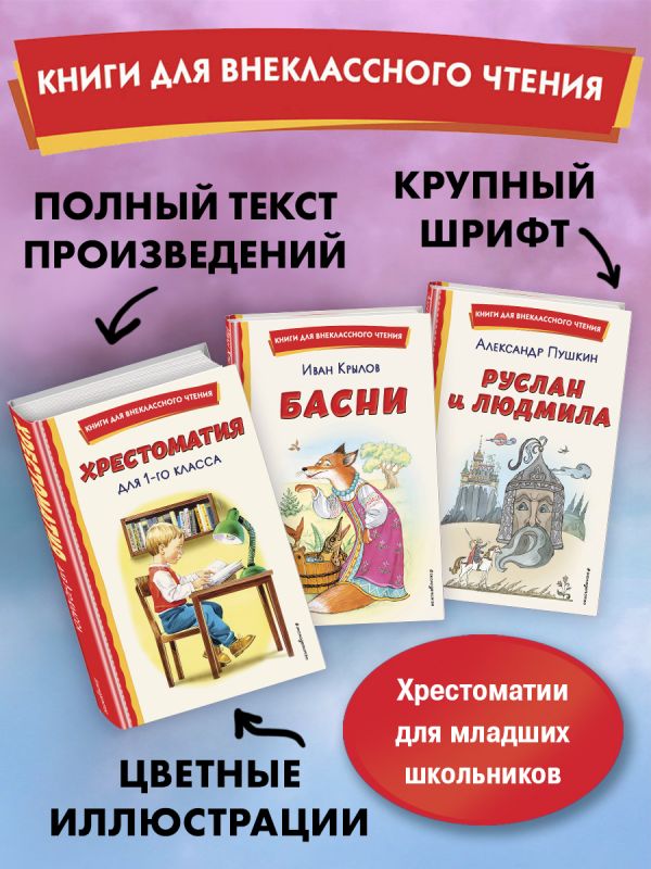 Серия «Книги для внеклассного чтения» — это подборка главных произведений русских и зарубежных авторов, входящих в школьную программу. Лучшие произведения детской литературы с цветными иллюстрациями помогут привить ребенку любовь к чтению.