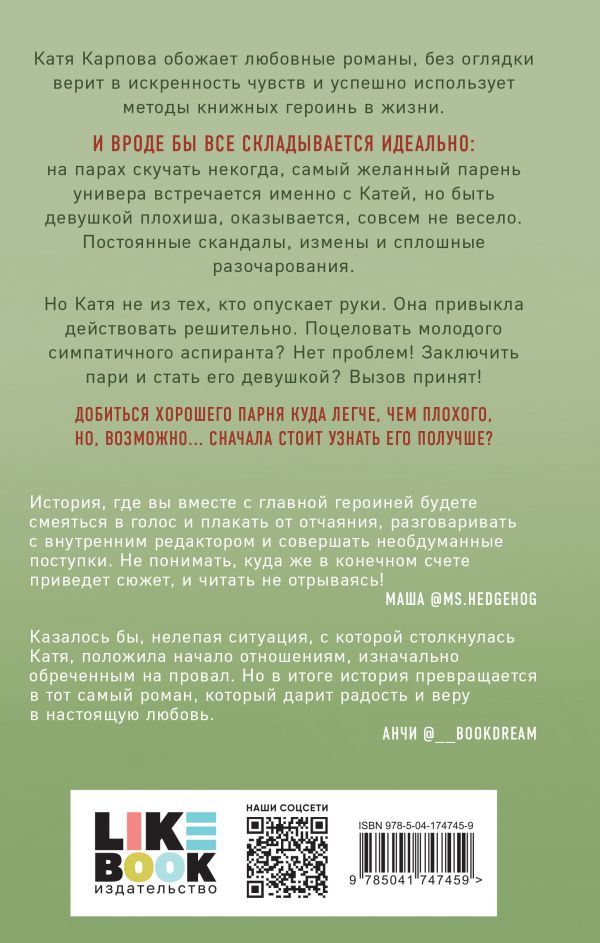 Катя Карпова обожает любовные романы, без оглядки верит в искренность чувств и успешно использует методы книжных героинь в жизни.