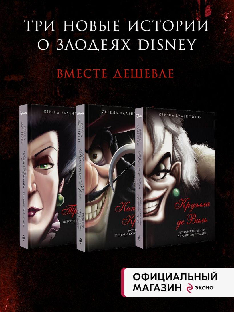 Коплект из трёх книг: Круэлла де Виль. История злодейки с разбитым сердцем, Капитан Крюк. История потерянного мальчишки и Леди Тремейн. История злой мачехи
