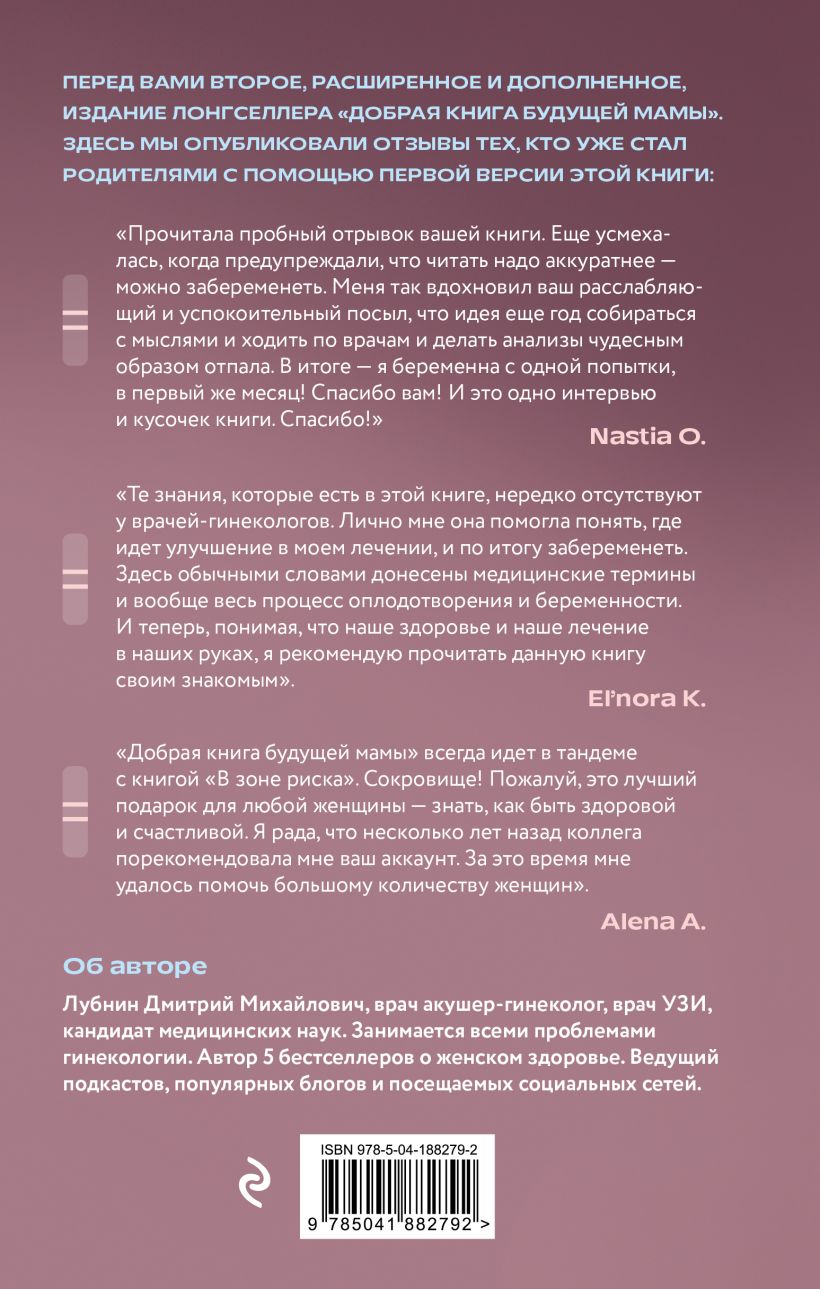 ДОБРАЯ КНИГА БУДУЩЕЙ МАМЫ: Перед вами обновленное, расширенное и дополненное издание лонгселлера "Добрая книга будущей мамы". С ее помощью сотни женщин, считавших себя бесплодными, легко смогли забеременеть.