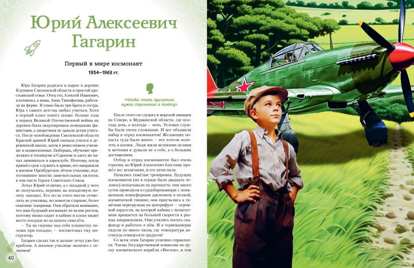 С помощью книги «Космонавты, прославившие Россию» вы познакомитесь с двадцатью известными соотечественниками — знаменитыми авиаторами, лётчиками и космонавтами, чьи имена навсегда останутся в истории России. Узнай, кто совершил первый авиационный полёт в Российской империи, какая наша соотечественница является первой в мире женщиной — военным лётчиком и как отправлялись покорять космос Гагарин, Терешкова, Титов и Леонов.