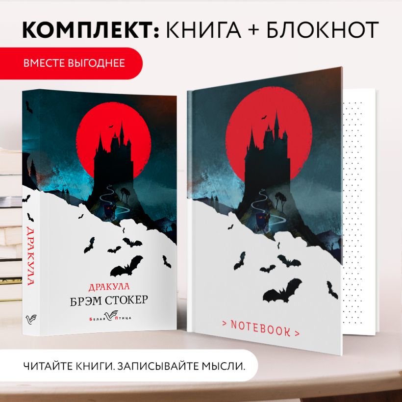Комплект книга + блокнот: «Дракула» Брэма Стокера и тематический блокнот «Замок Дракулы».