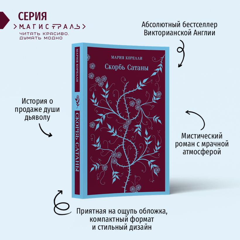 В комплект входят 3 книги: «Скорбь сатаны» Марии Корелли, «Фауст» Иоганна Гёте, «Эликсиры дьявола» Гофмана. Романы объединяет много тем — от поиска, исследования бытия, до расплаты и наказания — и, конечно, образ сатаны, который подан во всех трёх произведениях по-разному.