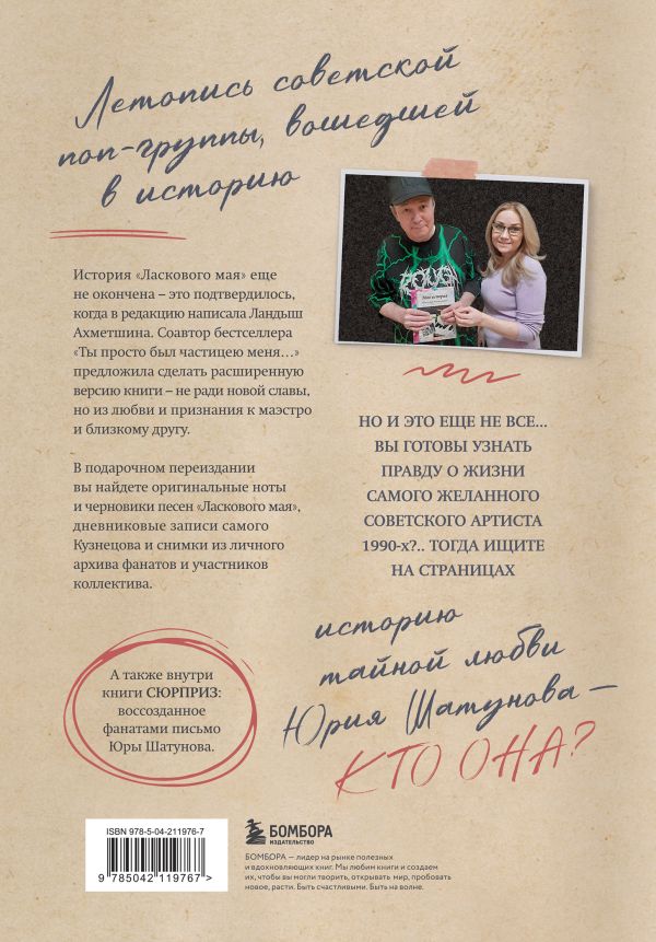 Однако самая ценная часть книги — письмо в конверте, созданное благодаря взаимодействию фанатов: все поклонники «Ласкового мая» поделились письмами Юры Шатунова, из которых удалось собрать одно целое.