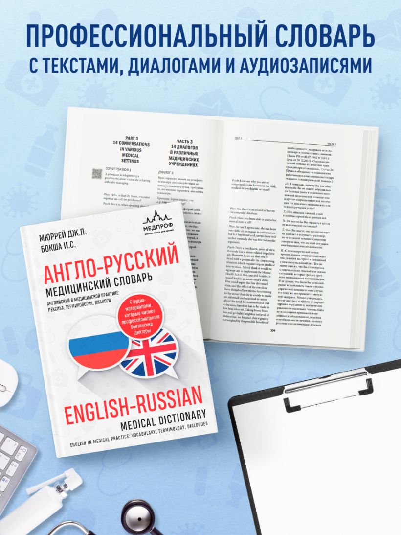 Данное издание сочетает в себе словарь, разговорник и медицинский справочник. Автор английской части - носитель языка - доктор из Великобритании Джонатан П. Мюррей. Книга предназначена для преподавателей английского языка в медицинских вузах, врачей, студентов-медиков и переводчиков, а также всех тех, кто пользуется услугами англоговорящих врачей.