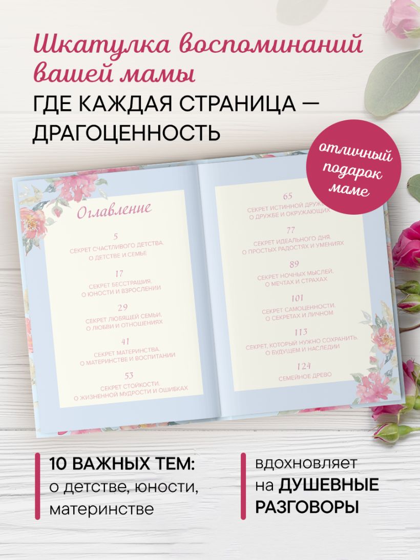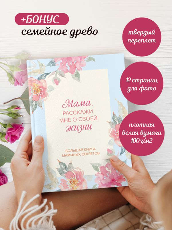 - “Мама, расскажи мне о своей жизни” — большая книга маминых секретов — уникальный альбом, где мама сможет поделиться историями, воспоминаниями и ценными советами, сохранив их для семьи и будущих поколений.