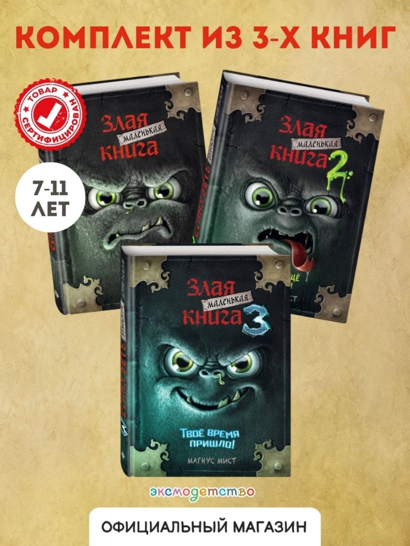 Первые три части любимой маленькой злой серии в этом комплекте: «Маленькая злая книга», «Маленькая злая книга 2» и «Маленькая злая книга 3».