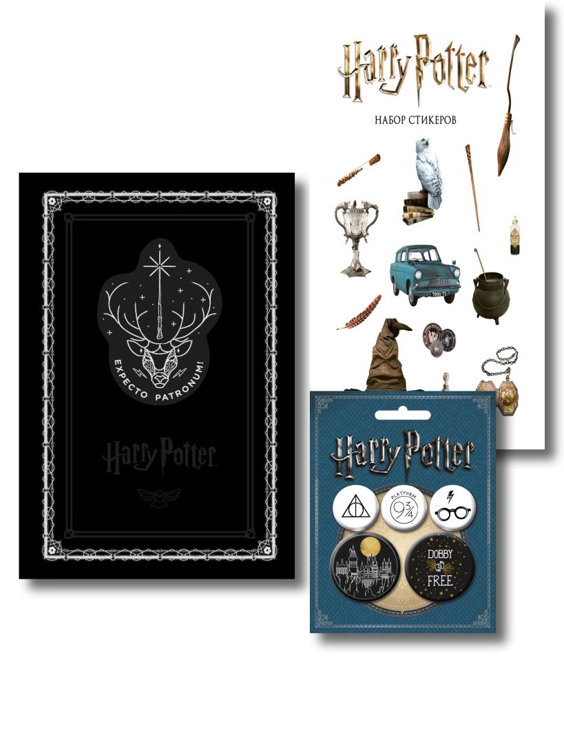 Комплект. Набор по Гарри Поттеру. Экспекто патронум! (Блокнот+стикеры+значки) (ИК)
