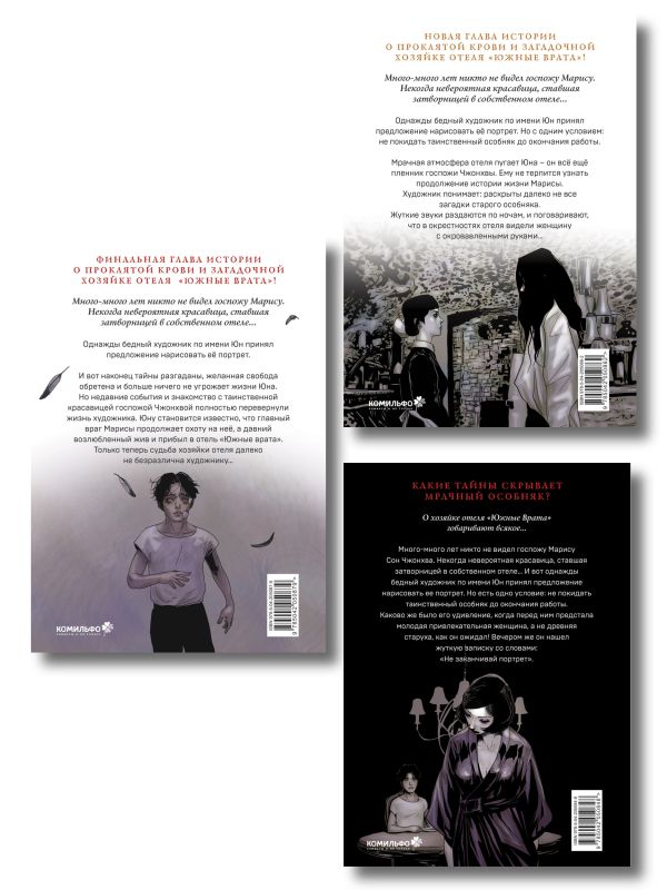 О хозяйке отеля «Южные Врата» поговаривают всякое... Много-много лет никто не видел госпожу Марису. И вот однажды бедный художник по имени Юн принял предложение нарисовать ее портрет. С одним условием: не покидать таинственный особняк до окончания работы. «Не заканчивай портрет», — предостерегает найденная записка.