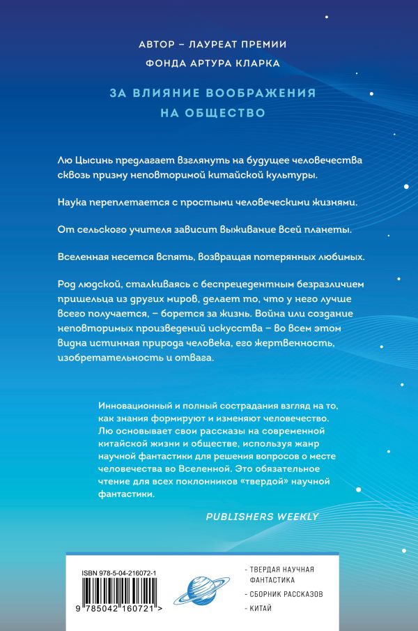 «Инновационный и полный сострадания взгляд на то, как знания формируют и изменяют человечество. Лю основывает свои рассказы на современной китайской жизни и обществе, используя жанр научной фантастики для решения вопросов о месте человечества во Вселенной. Это обязательное чтение для всех поклонников твердой научной фантастики». — Publishers Weekly