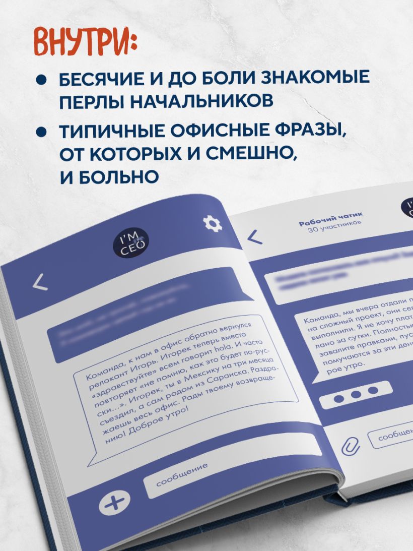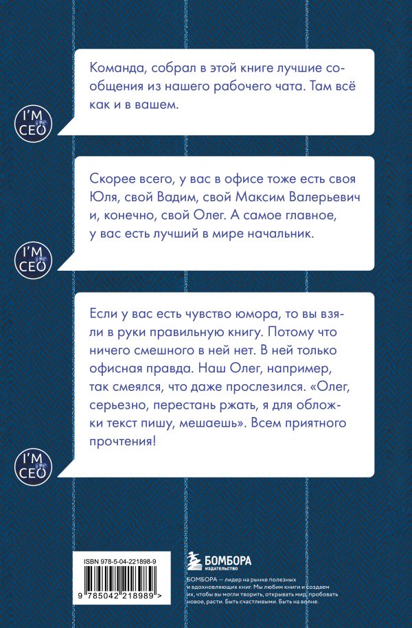 - Книга “Команда, хорошие новости! В выходные тоже работаем!” — самые смешные и узнаваемые цитаты руководителей из рабочих чатов. Смех гарантирован!