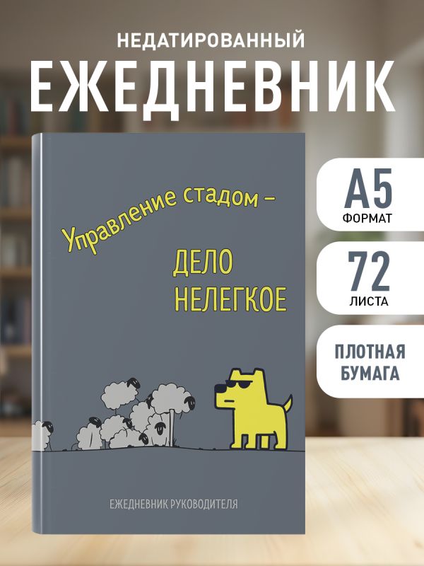 - Ежедневник “Управление стадом — дело нелегкое” (A5, 72 л.) — идеальное место для стратегий, планов и вдохновляющих идей... или саркастических заметок о подчинённых.