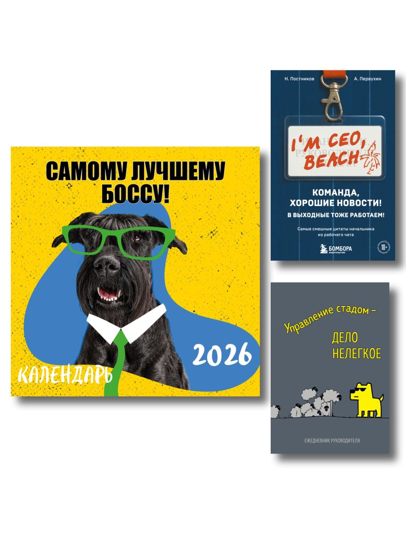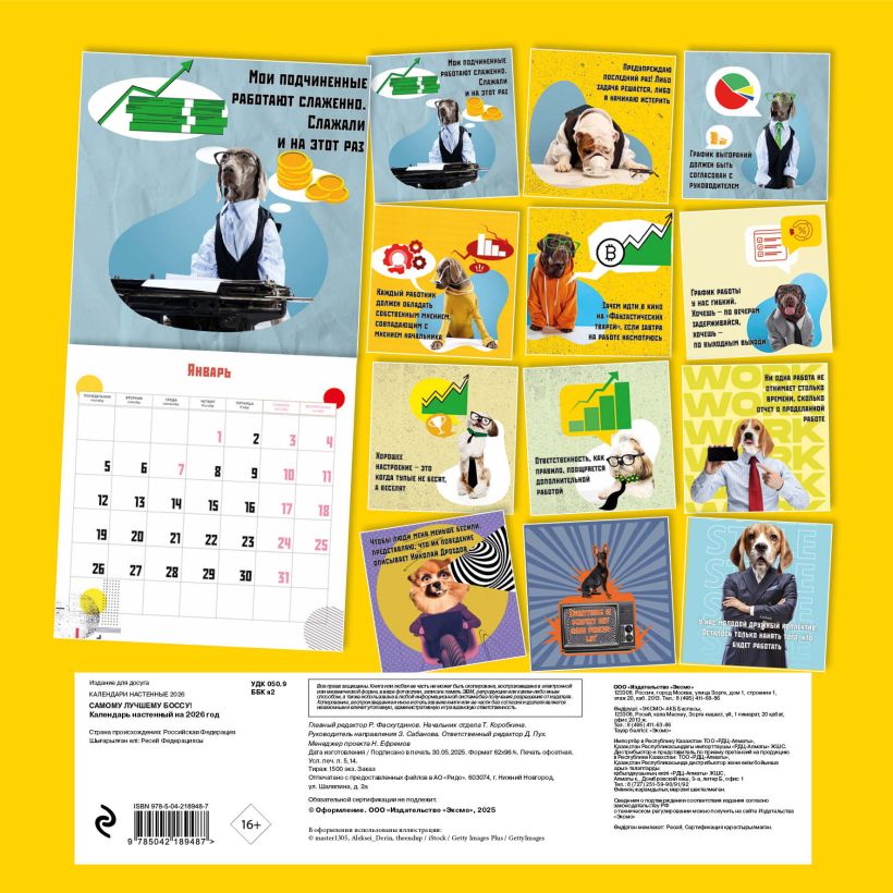 - Настенный календарь “Самому лучшему боссу!” (300х300 мм, 2026 год) — стильный и позитивный способ начать день с улыбки.