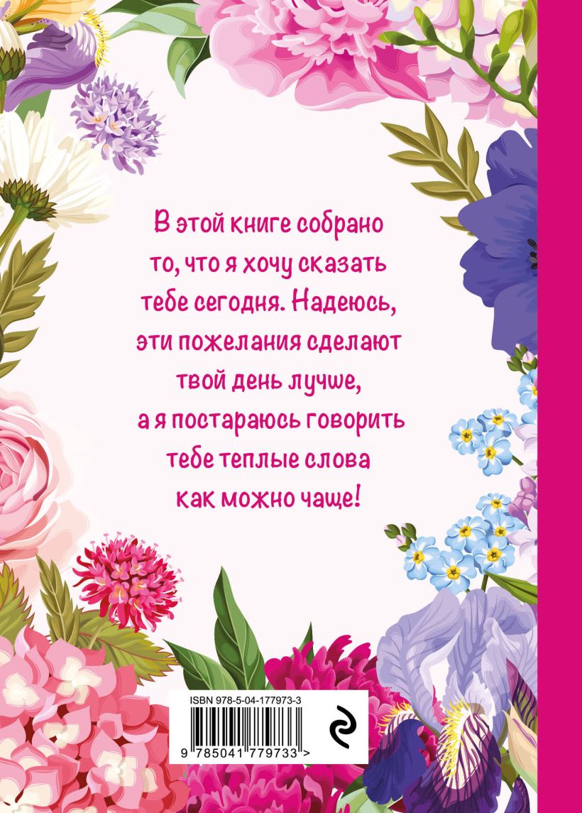 Признайтесь своей маме в любви с помощью невероятно милой и нежной книги-открытки. Как устроена книга На каждом развороте вашу любимую маму будут ждать точно подобранные трогательные, проникновенные, искренние пожелания и признания, которые помогут вам передать ей самые важные и теплые слова. Открытку украшают нежные рисунки, придающие ей праздничный вид. В нее можно вписать имена адресанта и получателя, а также собственные пожелания. Для этого есть пустые строки в конце книги. Для кого Для тех, кто хочет оригинально поздравить свою любимую маму, дополнить основной подарок необычной открыткой, которая останется на память на долгие годы. Для тех, кто хочет порадовать своего самого близкого человека без повода. Такой подарок никогда не потеряет привлекательный внешний вид за счет качественного исполнения и материалов высшего уровня. Также вы найдете открытки для папы и для бабушки.