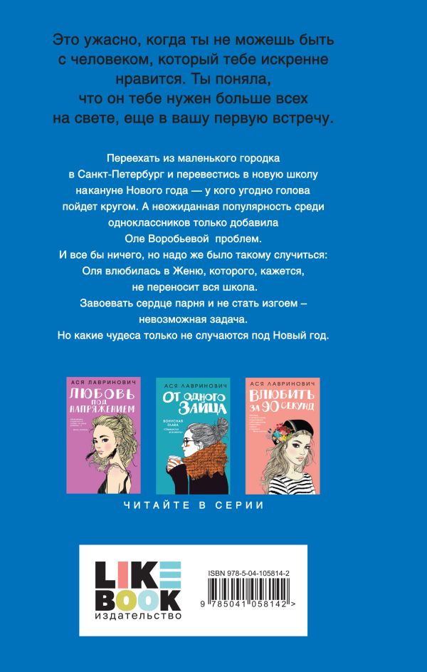 ЗИМНЯЯ НОВИНКА ОТ АСИ ЛАВРИНОВИЧ, САМОГО ПОПУЛЯРНОГО СОВРЕМЕННОГО ЯНГ-ЭДАЛТ АВТОРА! Суммарный тираж ее книг уже более 1 МИЛЛИОНА проданных экземпляров! Один зимний бал. Одна милая карликовая свинка. И одна маленькая ложь, которая перевернет все с ног на голову. Этот Новый год станет незабываемым! У Теоны Берая есть все, о чем может мечтать старшеклассница: верные подруги, популярность в школе, хорошая внешность и отличная успеваемость. А недавно ее пригласил на ежегодный бал самый популярный парень в классе. Когда у ее отца возникают серьезные проблемы на работе, Теона вынуждена переехать в другой город к сводной старшей сестре, которую она совсем не знает. Все планы рушатся в одночасье. В новой школе Теона знакомится с незаметной Ясей Дзвоник и загадочным и неразговорчивым Тихоном Барко. Узнав о давнем желании Яси стать популярной, Теона решается на эксперимент. Ей предстоит «перевоспитать» тихоню и сделать из нее звезду, а Тихона заставить встречаться с королевой школы. Вот так задачка! Об авторе Ася Лавринович — один из самых популярных авторов российского янг-эдалта в жанре современной сентиментальной прозы. Суммарный тираж ее проданных книг составляет более 1 млн экземпляров. Победитель премии «Выбор читателей 2023» на Livelib в номинации «Young Adult. Лучшая книга о подростках и для подростков». На две книги Аси — «Загадай любовь» и «Нелюбовь сероглазого короля» — куплены права на экранизацию от ОККО.